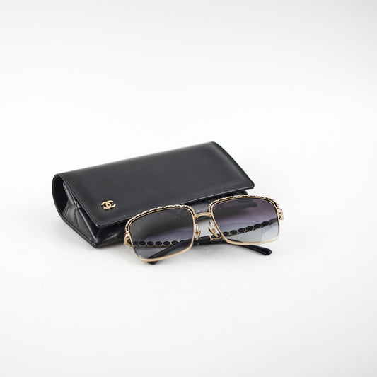 Chanel Square Sunglasses Grey/Gunmetal Black With Chain