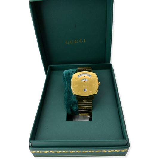 GUCCI Grip GG Engraved Quartz Gold Dial Stainless Steel Watch 35MM