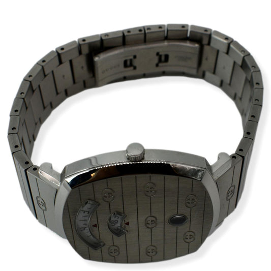 GUCCI Grip 1573 GG Engraved Quartz Silver Dial Stainless Steel Watch 35MM
