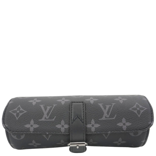 LOUIS VUITTON 3 Watch Case Monogram Eclipse Pouch Black