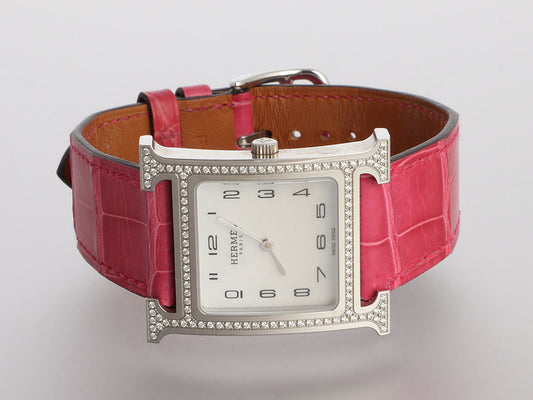 Hermès Medium Stainless Steel Diamond H Heure Watch 30mm