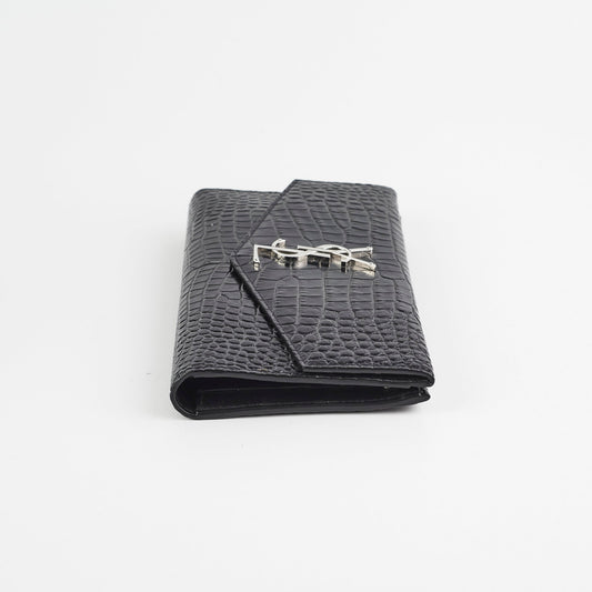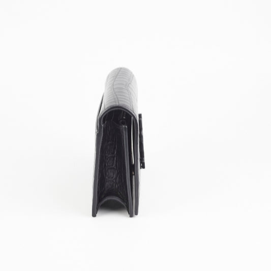 Saint Laurent Croc Embossed Wallet Clutch Black