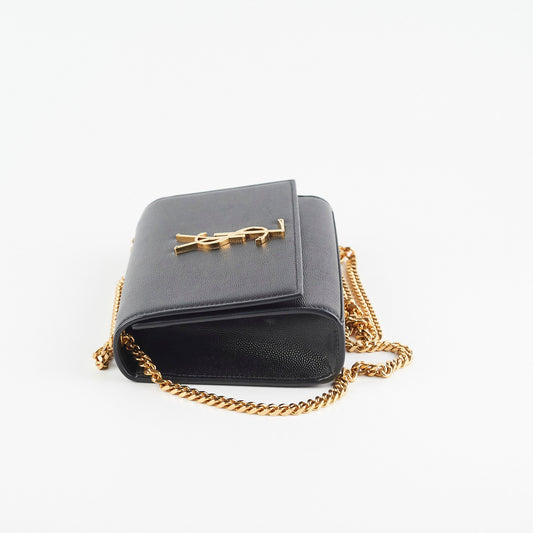 Saint Laurent Kate Croc Wallet On Chain WOC Black