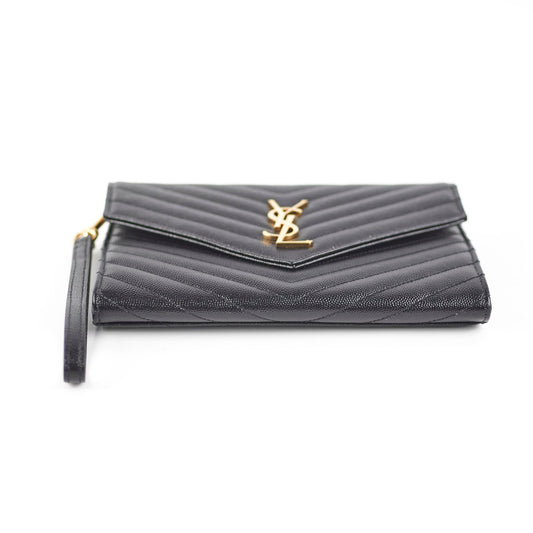 Saint Laurent Grained Leather Black Clutch Wristlet