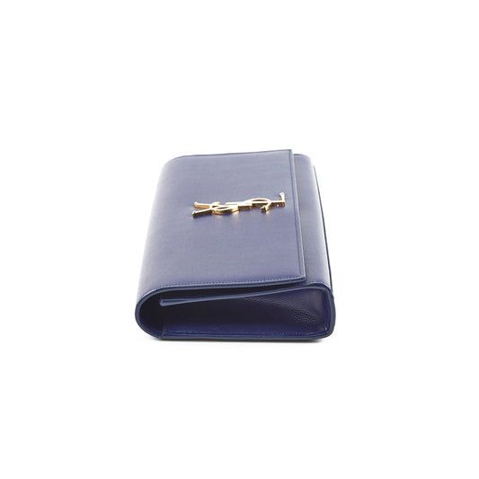 Saint Laurent Long Blue Grained Leather Clutch