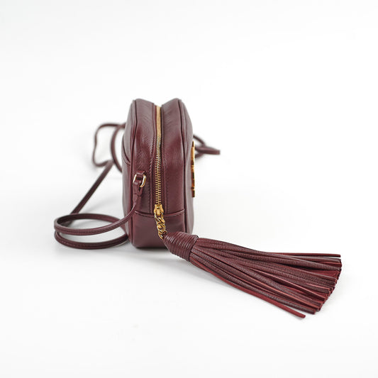 Saint Laurent Mini Lou Leather Camera Burgundy Crossbody Bag
