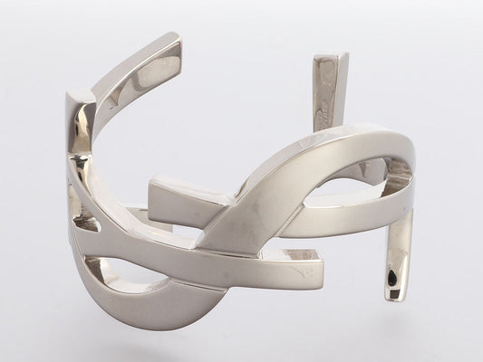Saint Laurent Silver Cassandre Monogram Cuff Bracelet