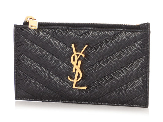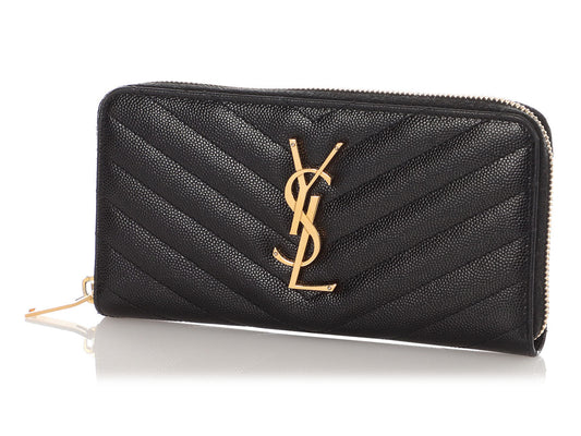Saint Laurent Large Black Grain de Poudre Monogram Zip Wallet