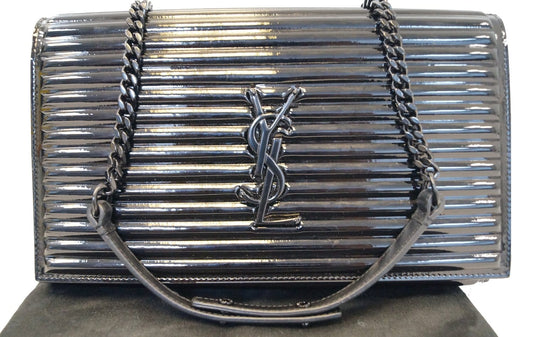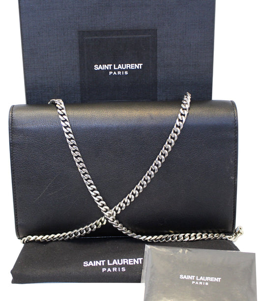YVES SAINT LAURENT Kate Black Leather Chain Clutch Crossbody Bag