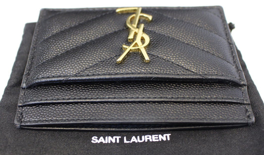 YVES SAINT LAURENT Monogram Card Case Grain Embossed Leather Black