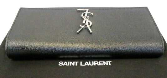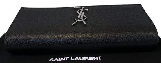 YVES SAINT LAURENT Monogram Black Leather Document Holder Clutch