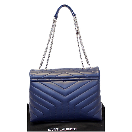 YVES SAINT LAURENT Matelasse Loulou Monogram Calfskin Shoulder Bag Blue