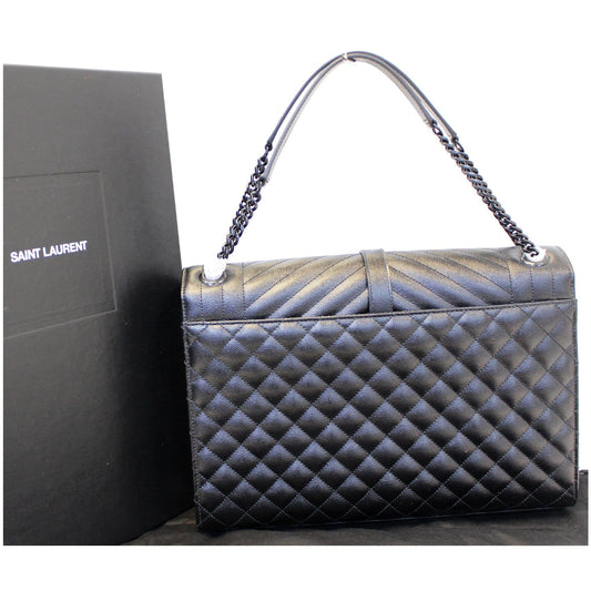 YVES SAINT LAURENT Envelope Large Matelasse Embossed Leather Shoulder Bag Black