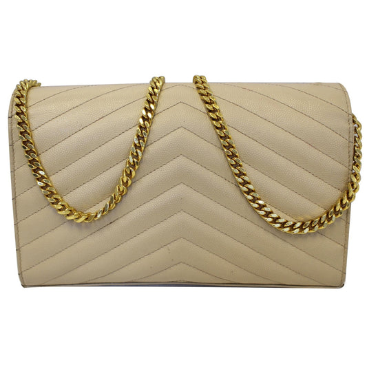 YVES SAINT LAURENT Matelasse Chevron Grain De Poudre Envelope Chain Wallet Beige