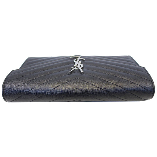 YVES SAINT LAURENT Monogram Grain De Poudre Chain Wallet Black