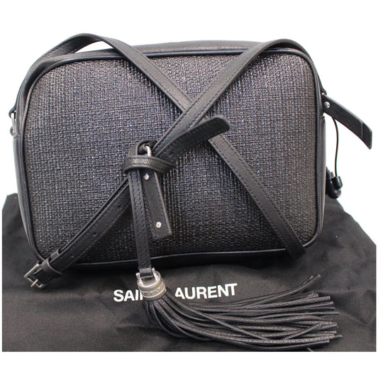 YVES SAINT LAURENT Lou Camera Raffia Canvas Crossbody Bag Black