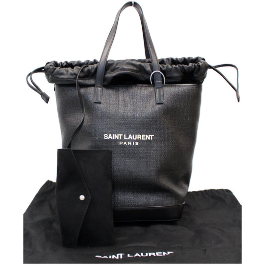 YVES SAINT LAURENT Teddy Canvas/Leather Drawstring Shopping Tote Black - Last Call