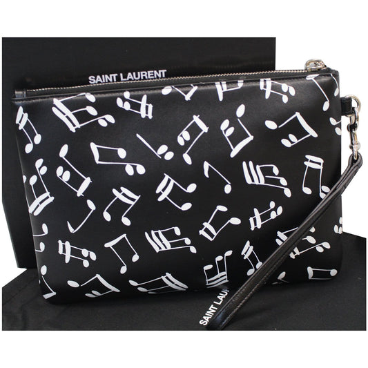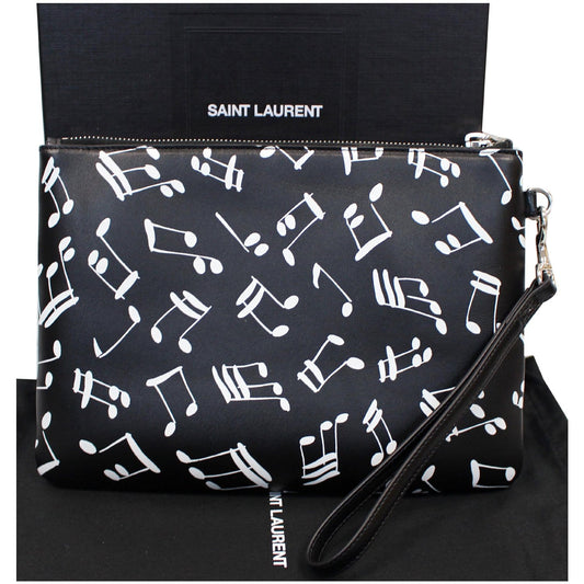 YVES SAINT LAURENT Calfskin Musical Notes Zip Pouch Black - Last Call