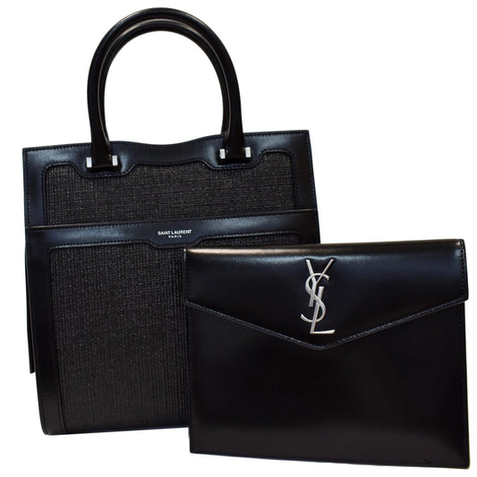 YVES SAINT LAURENT Uptown Small Canvas Leather Tote Bag Black