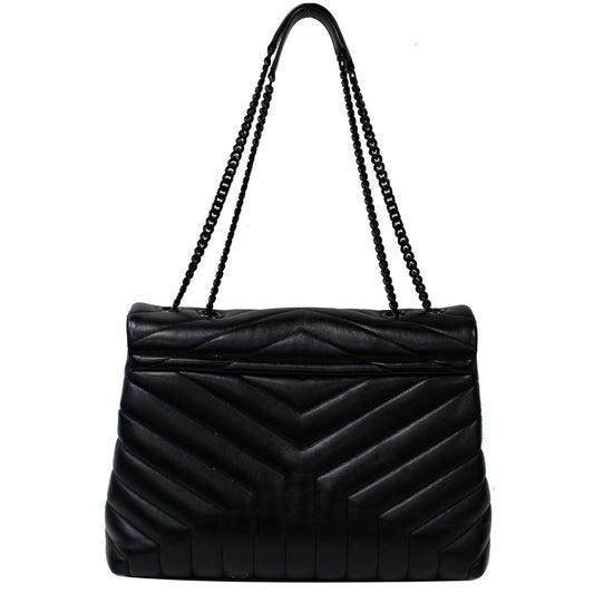 YVES SAINT LAURENT Large Loulou Calfskin Matelasse Chain Shoulder Bag Black