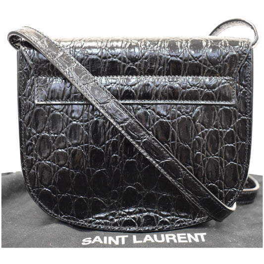 YVES SAINT LAURENT Kaia Small Crocodile Embossed Leather Satchel Bag Black