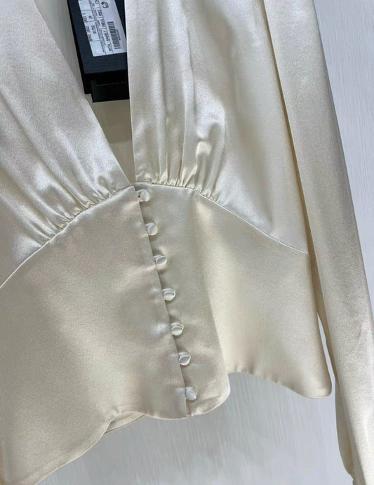 Saint Laurent V-neck cream white satin shirt, brand new FR34
