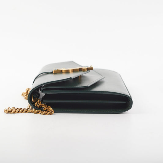 Saint Laurent Medium Sulpice Flap Wallet on Chain Green