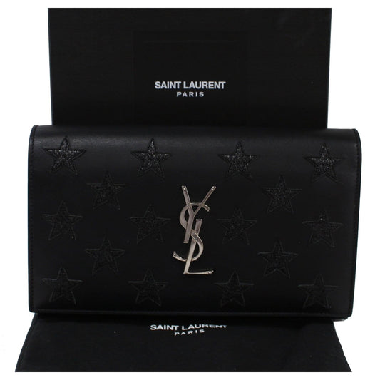YVES SAINT LAURENT Kate Stars Leather Chain Clutch Crossbody Bag Black