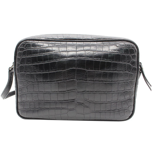 YVES SAINT LAURENT Lou Crocodile Embossed Leather Camera Crossbody Bag Black