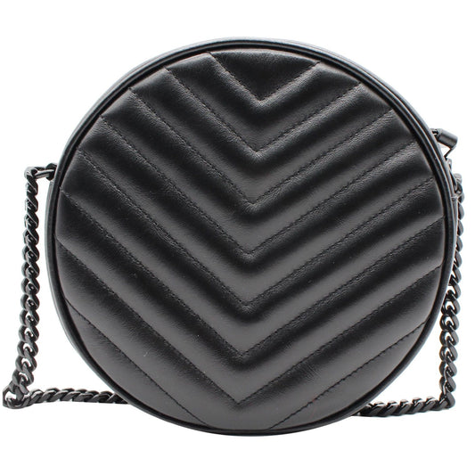 YVES SAINT LAURENT Vinyle Round Chevron Leather Camera Crossbody Bag Black