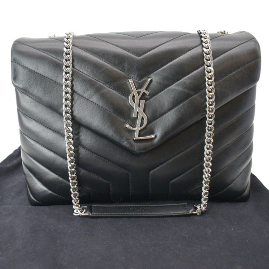 YVES SAINT LAURENT Medium Loulou Matelasse Leather Chain Shoulder Bag Black
