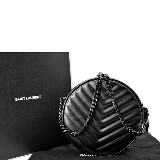 YVES SAINT LAURENT Vinyle Round Chevron Leather Camera Crossbody Bag Black