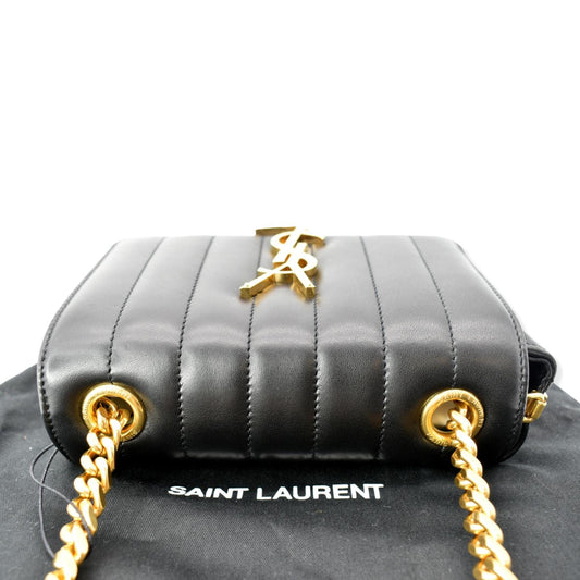 YVES SAINT LAURENT Vicky Small Monogram Leather Chain Crossbody Bag Black