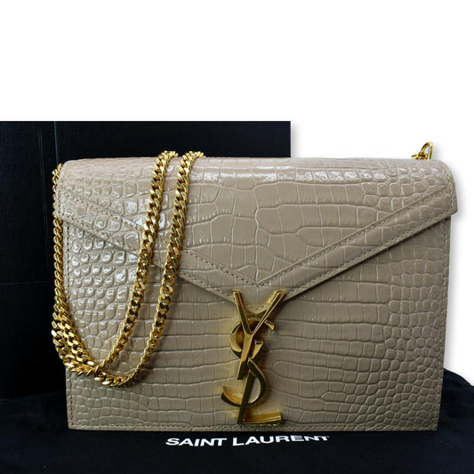 YVES SAINT LAURENT Cassandra Top Handle Embossed Shoulder Bag Beige