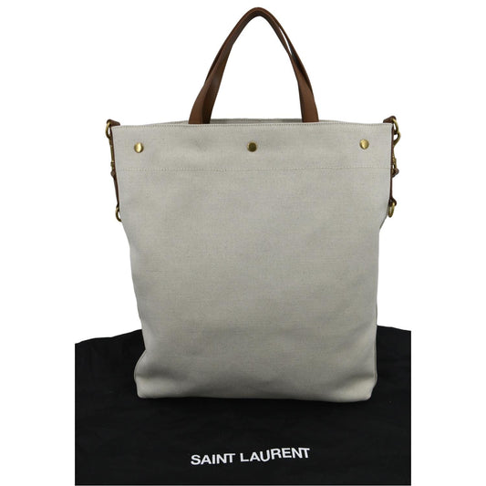 YVES SAINT LAURENT North South Foldable Canvas Smooth Leather Shoulder Bag Naturel