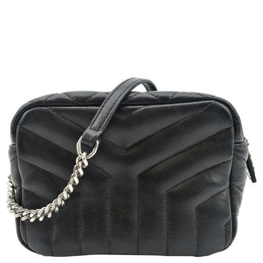 YVES SAINT LAURENT Lou Chevron Leather Camera Crossbody Bag Black
