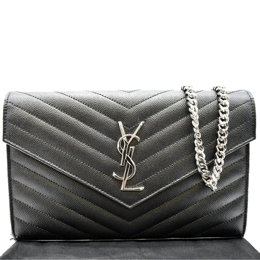 YVES SAINT LAURENT Wallet on Chain Leather Shoulder Bag Black