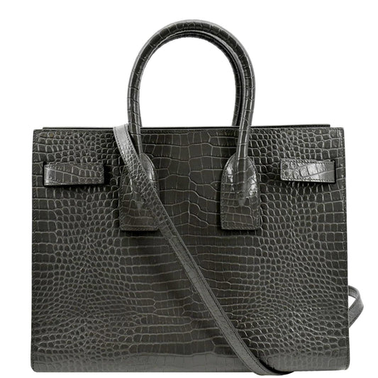 YVES SAINT LAURENT Sac de Jour Crocodile-Embossed Satchel Bag Grey