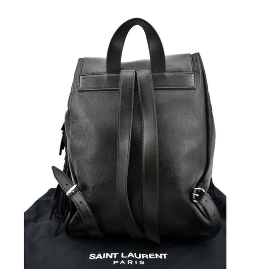 YVES SAINT LAURENT Fringe Calfskin Leather Backpack Bag Black