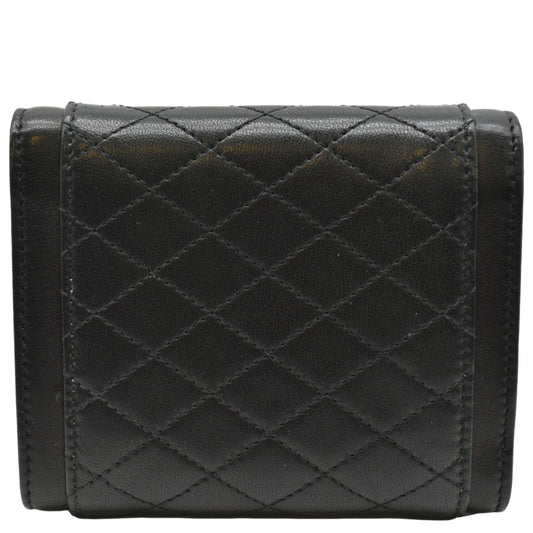 YVES SAINT LAURENT Gaby Compact Tri Fold Small Quilted Leather Wallet Black