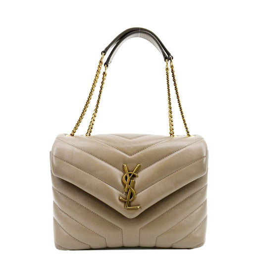 YVES SAINT LAURENT Small Loulou Quilted Leather Crossbody Bag Dark Beige