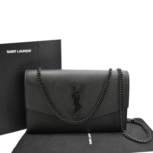 YVES SAINT LAURENT Wallet on Chain Leather Shoulder Bag Black