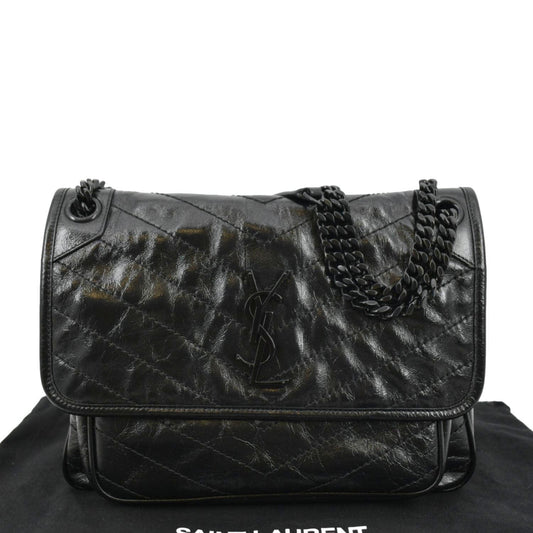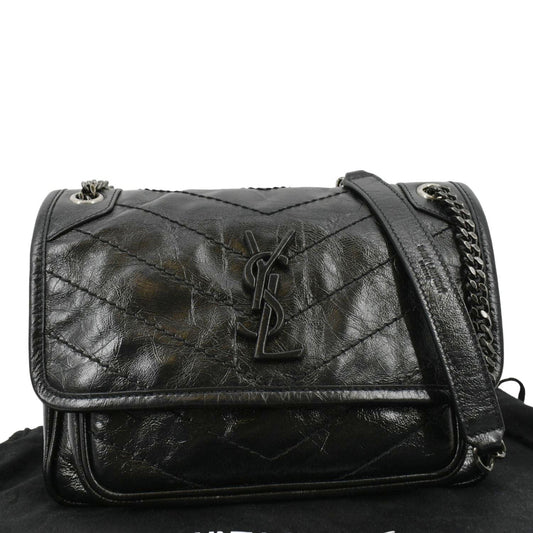 YVES SAINT LAURENT Niki Baby Crinkle Leather Shoulder Bag Black