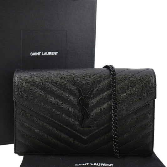 YVES SAINT LAURENT Cassandre Chain Wallet Leather Crossbody Bag Black