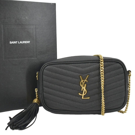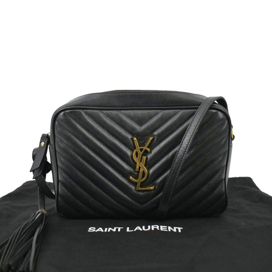 YVES SAINT LAURENT Lou Chevron Leather Camera Crossbody Bag Black