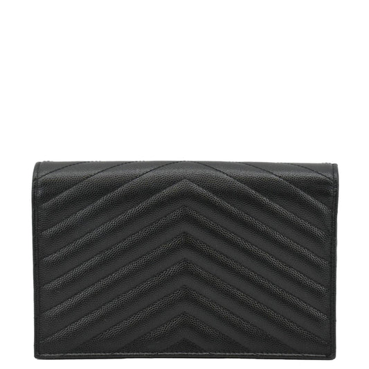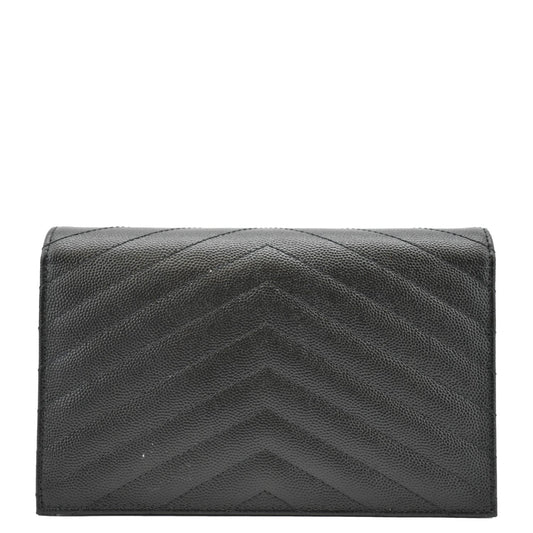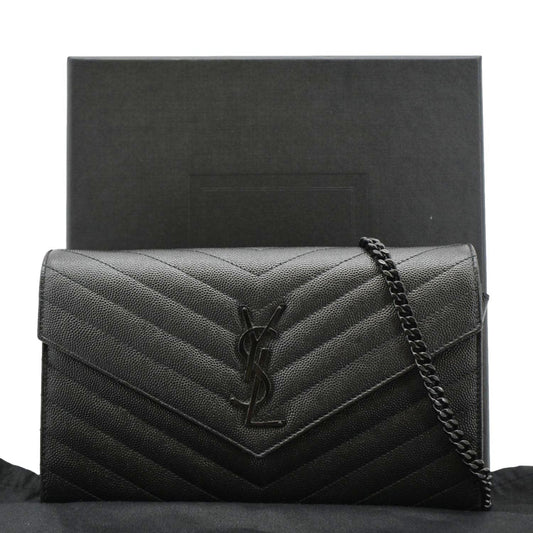 YVES SAINT LAURENT Cassandre Chain Wallet Leather Crossbody Bag Black