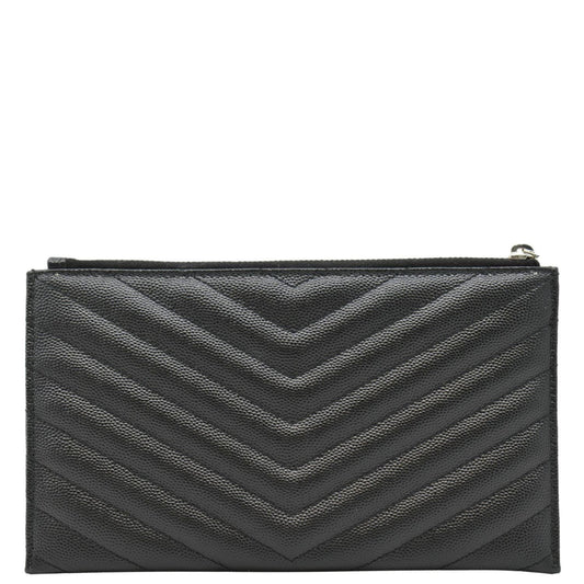 YVES SAINT LAURENT Monogram Bill Grain De Poudre Chevron Leather Zip Pouch Black