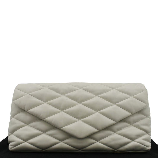 YVES SAINT LAURENT Sade Puffer Quilted Leather Envelope Clutch Off White