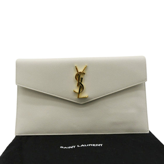 YVES SAINT LAURENT Uptown Envelope Grain De Poudre Leather Clutch Light Grey