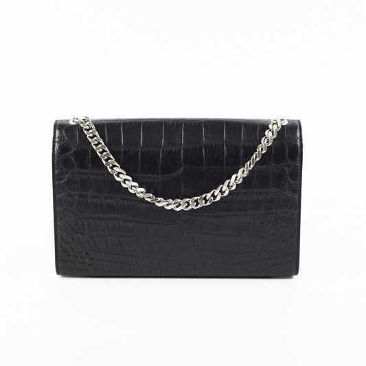Saint Laurent Medium Black Croc Kate Crossbody Bag